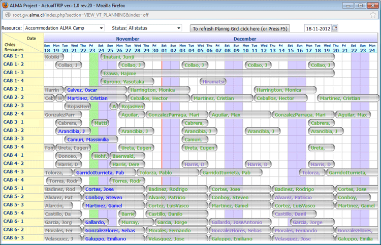 Pantalla principal. Desde ésta pantalla puede seguir la disponibilidad de cualquier expedición y sus recursos, sin tener que cambiar de log o permisos. .
