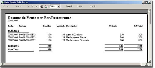 Se pueden informar por rubro y articulos las ventas de bar o restaurante efectuadas.