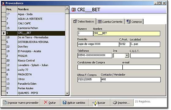 Aqui se administra la nómina de proveedores, su cuenta corriente, las compras, pedidos, etc.