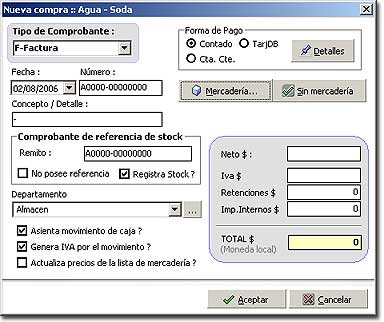 La pantalla de compras nuevas poseen sendas opciones para agregar un comprobante y su mercadería.