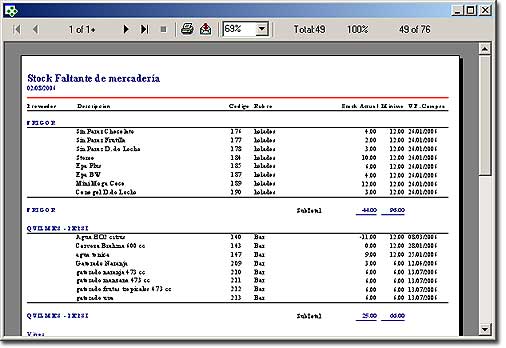 ActualHotel! permite emitir informes de stock faltante por proveedores.