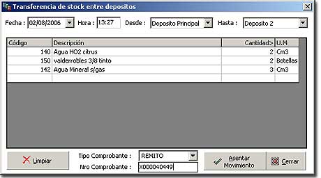 Desde esta pantalla se realizan las transferencias de stock entre depositos del hotel.