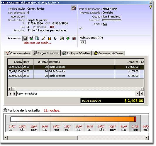Éste panel muestra y permite gestionar información referente al pasajero seleccionado, desde aqui puede tomar el control absoluto de su estadía.