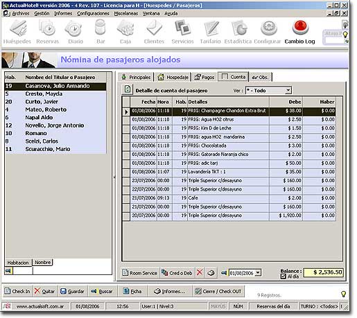 ActualHotel! posee un ágil y versatil sistema de herramientas para la recepción, se pensó en el diseño ameno, sencillo que no interfiera en la relación cotidiana con el pasajero, permitiendo obtener al instante toda la información necesaria.