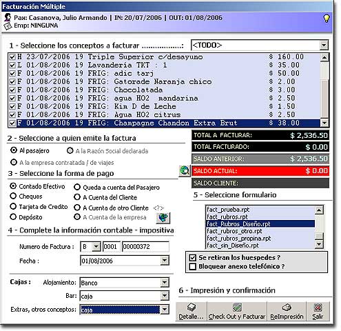 La pantalla de check Out es muy versatil y permite facturación múltiple.