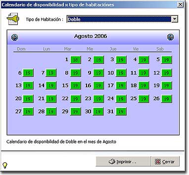 Mediante esta pantalla, el operador podrá chequear la disponibilidad para ciertas fechas de un tipo de habitación especifica.