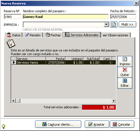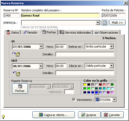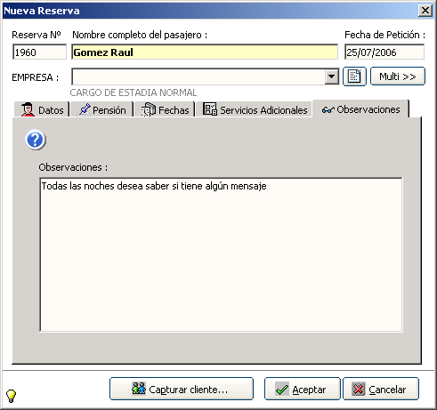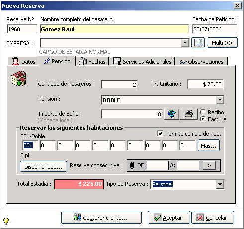 Esta pantalla permite ingresar una reserva de habitaciones a una empresa o persona.