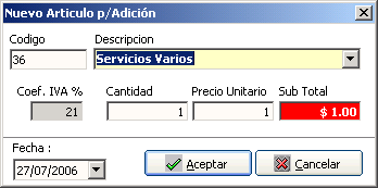 Para gestionar dichos servicios, hágalo utilizando la ventana “Tarifario” .