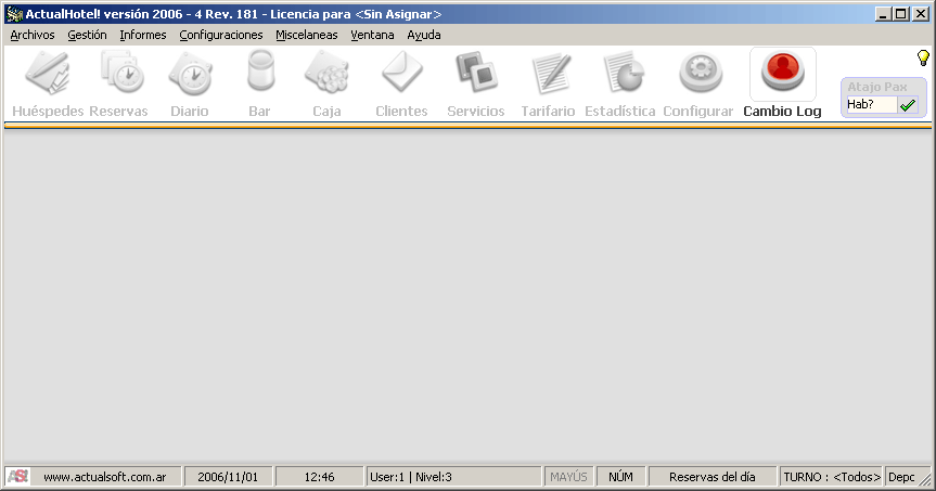 Al ingresar al sistema ActualHotel! no le sera difícil comprender la distribución de los elementos comunes a cualquier ventana de Windows ya que su diseño se atiene a este estandar o convención de apariencia.