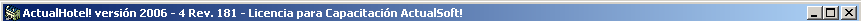 La "Barra de Titulo" encabezando de izquierda a derecha presenta; el nombre del producto, su versión y numero de revisión, junto con el licenciamiento a su nombre o el de su hotel según lo haya cargado en el formulario Datos del Hotel (Vease: el tópico 1.4.2 - Datos del Hotel de este manual).