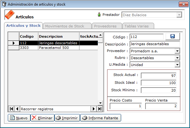 Mantenimiento de los artículos codificados, cuantificados y valorizados.